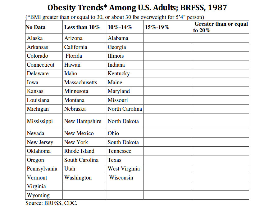 Above is a PDF from the CDC intended to provide a verifiable account of American health as far back as 1987.