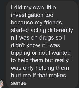 And uh… the drones. If Ben was a mentally ill addict? then what was with the drone hovering over our heads? It followed him… could have been law enforcement. The photo we took got deleted prolly on accident. Surveillance tech patrolling the crazies?