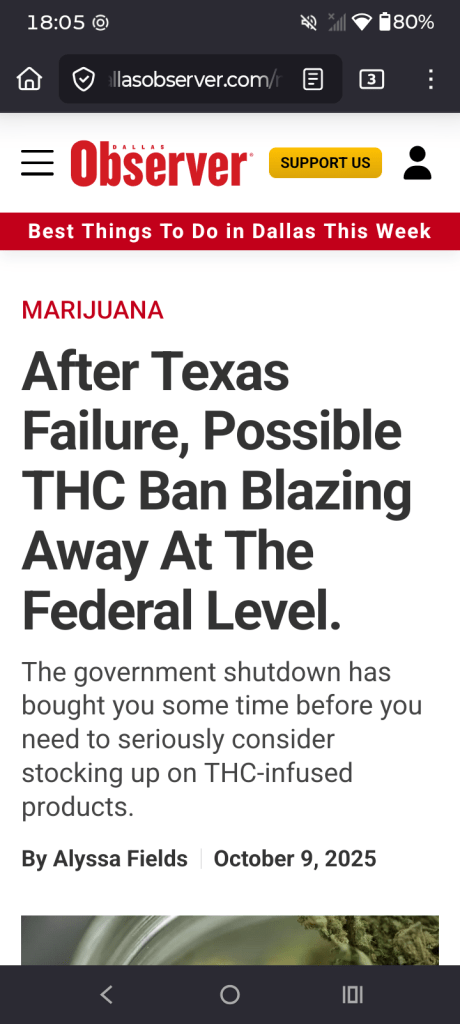 Texas Bans on THC? February 10, 2026February 10, 2026 by Anonymous Radio Redux, posted in education Share this: Share on X (Opens in new window) X Share on Facebook (Opens in new window) Facebook Like Loading...